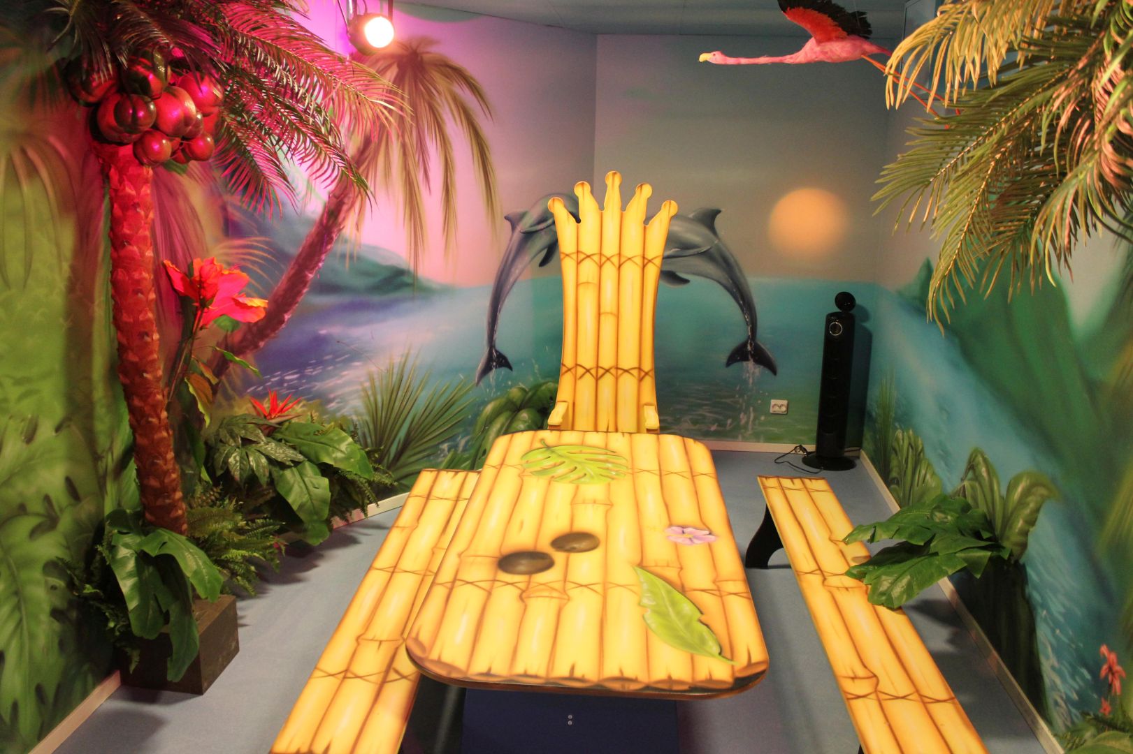 Leklandet har högtalare i varje kalasrum som går att ansluta via Bluetooth och en 3.5mm aux kabel.