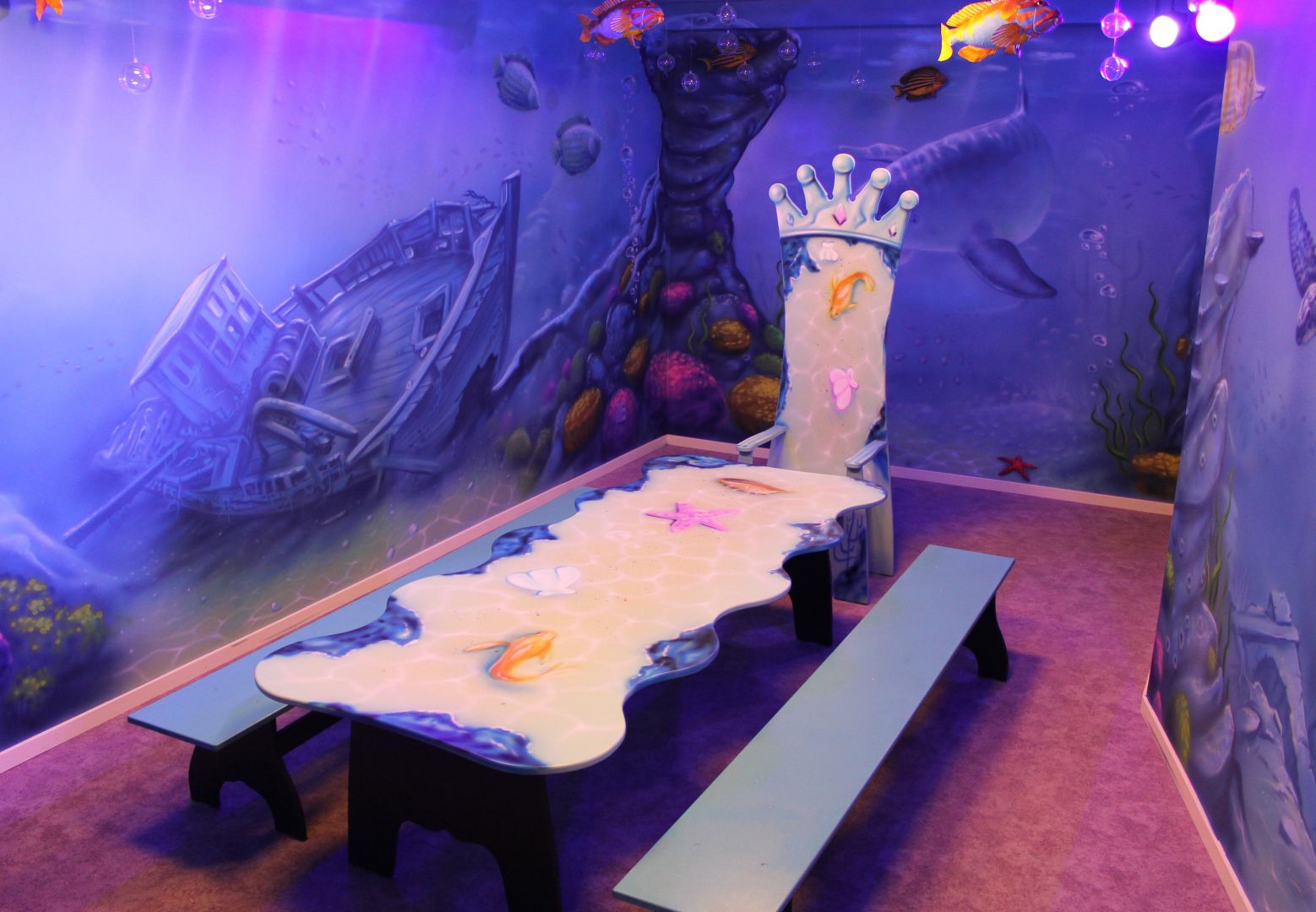 Efter 60 minuter i kalasrummet med mat, presentöppning och sång för födelsedagsbarnet spritter det nog i benen och då släpper vi ut våra smådelfiner i Leklandet.
