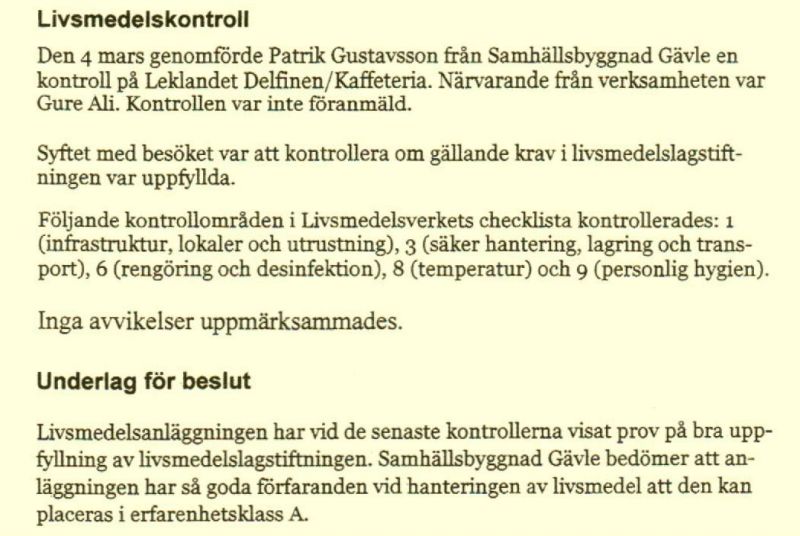 Leklandets servering får bra betyg vid livsmedelskontroll