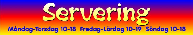 Vi serverar allt från kaffe och goda bullar och glass till hamburgertallrik eller toast. Det finns barnmatsburkar att köpa till de minsta barnen och självklart mjukglass till både stora och små. Vårt fikabröd är bakat på lokalt bageri och vi gör själva smörgåsar efter önskemål.